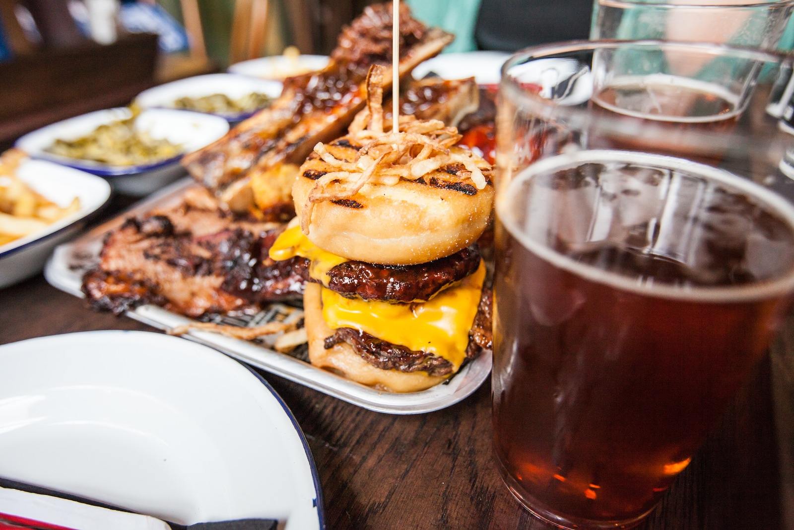 When I say “true yankee portions” I ain’t kidding. After sharing the decadent swine fries (a mix of sweet potato and skin-on fries with sour cream, cheese, chilli and pulled pork), I was officially defeated by food: my 400-gram meat combo of pulled pork and beef brisket with a side of giant onion rings went largely uneaten. My stomach must have reversed to European dish size.